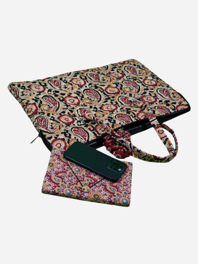 Handcrafted Cotton & Vegan Leather Laptop bag with Shoulder Strap – Stylish, Lightweight & Durable (14x10 Inch).