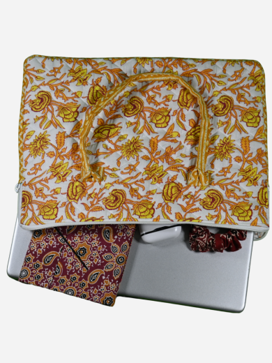 Nirjhari Handmade Quilted Yellow Laptop Bag