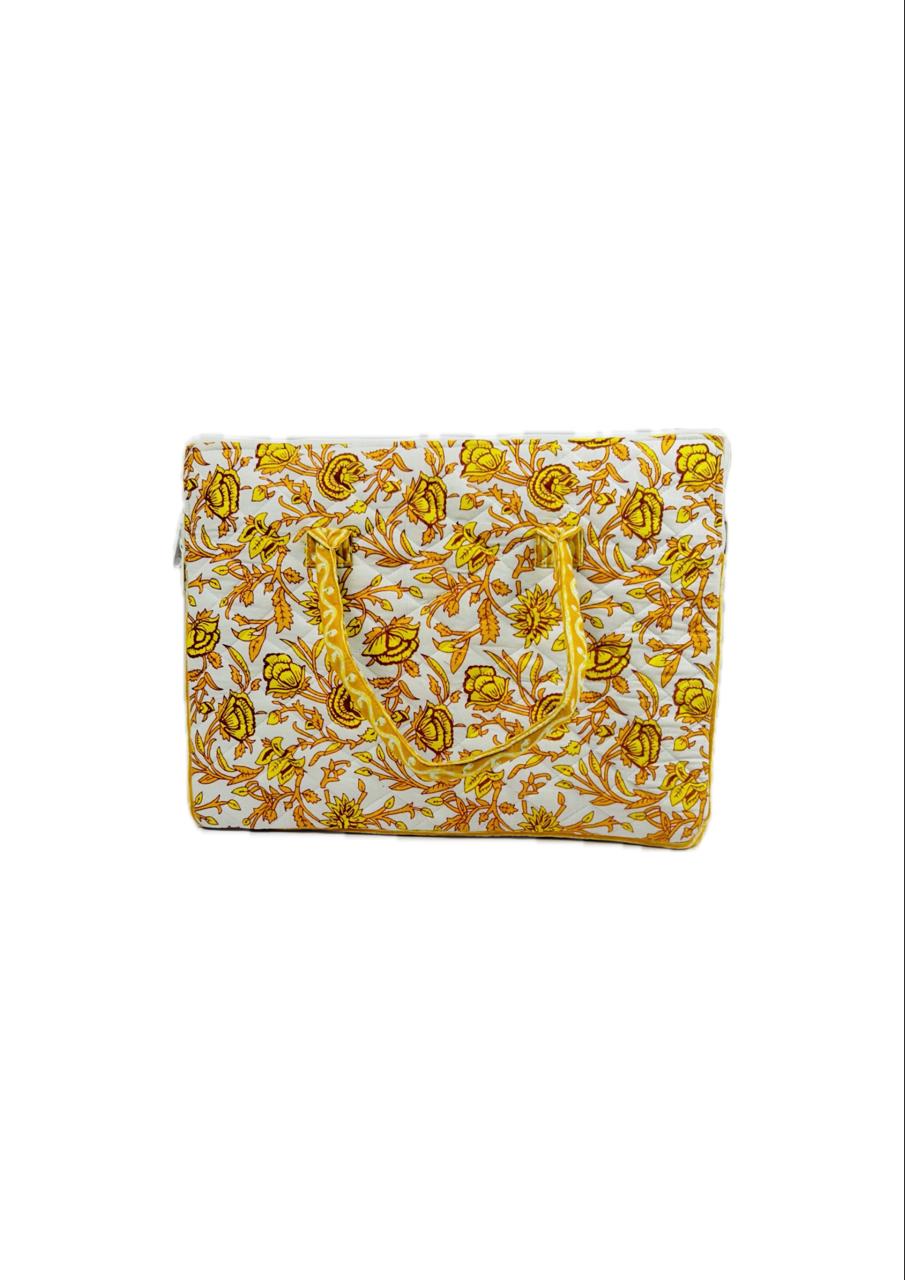 Nirjhari Handmade Quilted Yellow Laptop Bag