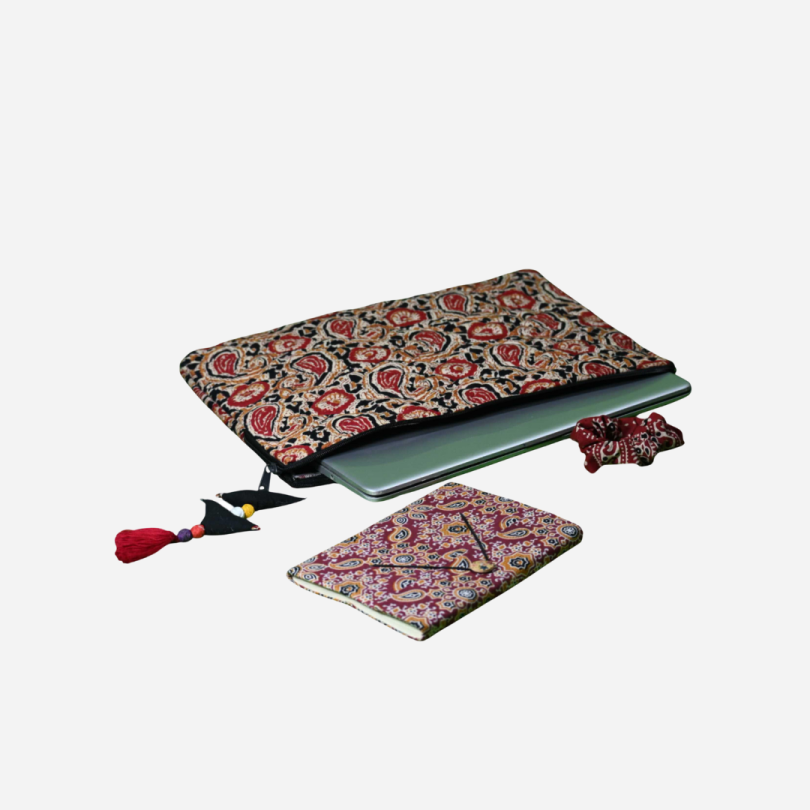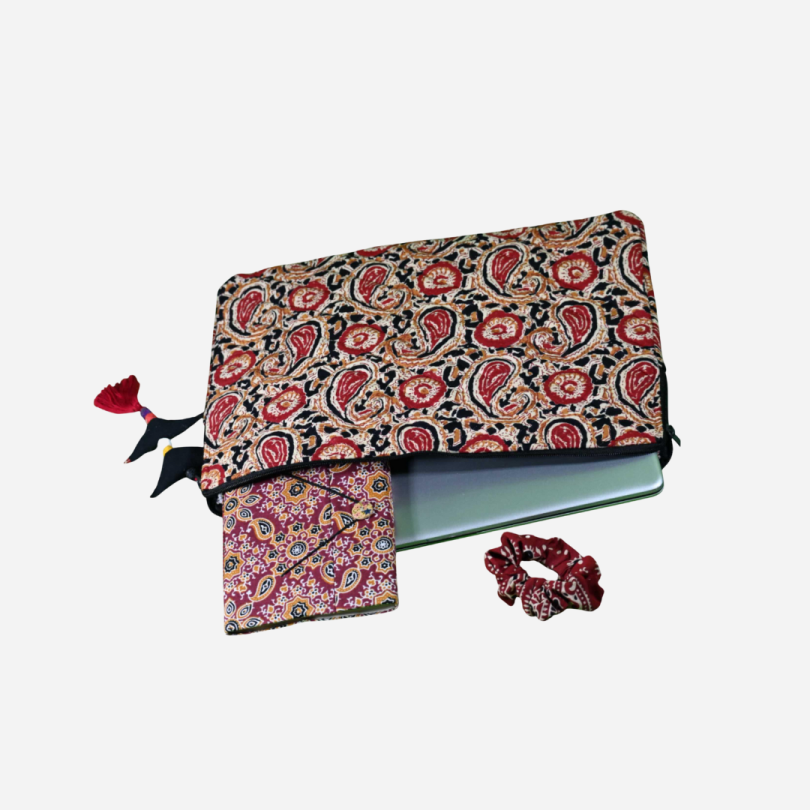 Nirjhari Red Handcrafted Quilted Laptop Sleeve – 16 inch
