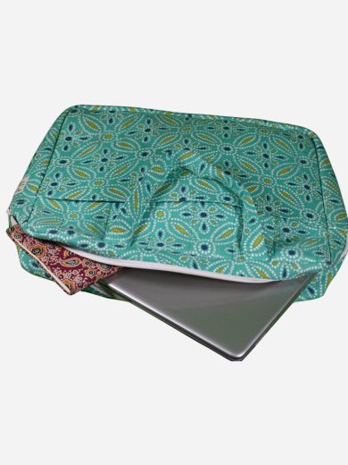 Nirjhari Handcrafted Cotton Green Laptop Sleeve